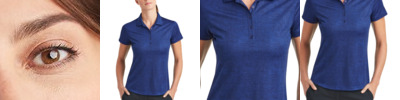 The allover crosshatch print adds a retail, technical look to this polo, while the Dri-FIT fabrication ensures breathable comfort. Tailored for a feminine fit. Design details include a self-fabric collar, five-button placket and open hem sleeves. A contrast heat transfer Swoosh design trademark is on the left sleeve. Made of 5.29-ounce, 100% polyester Dri-FIT fabric.